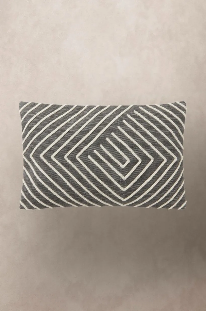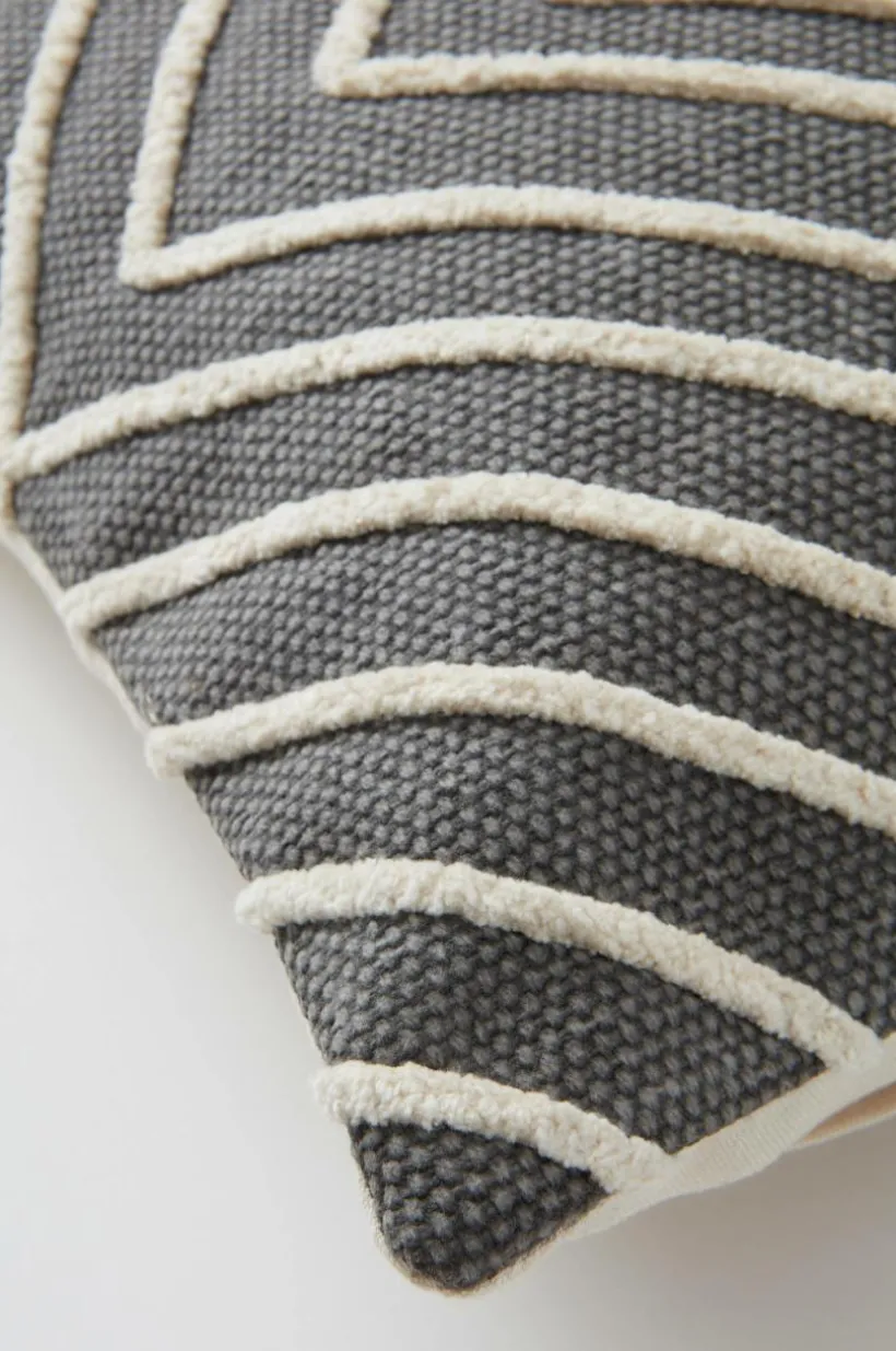 1-pack kuddfodral av grövre bomullstyg med broderat, geometriskt mönster i en ljusare nyans. Baksidan är slät i det grövre tyget. Dragkedja i nederkant. Lite nya kuddar i soffan ger en känsla av nytt och fräscht.