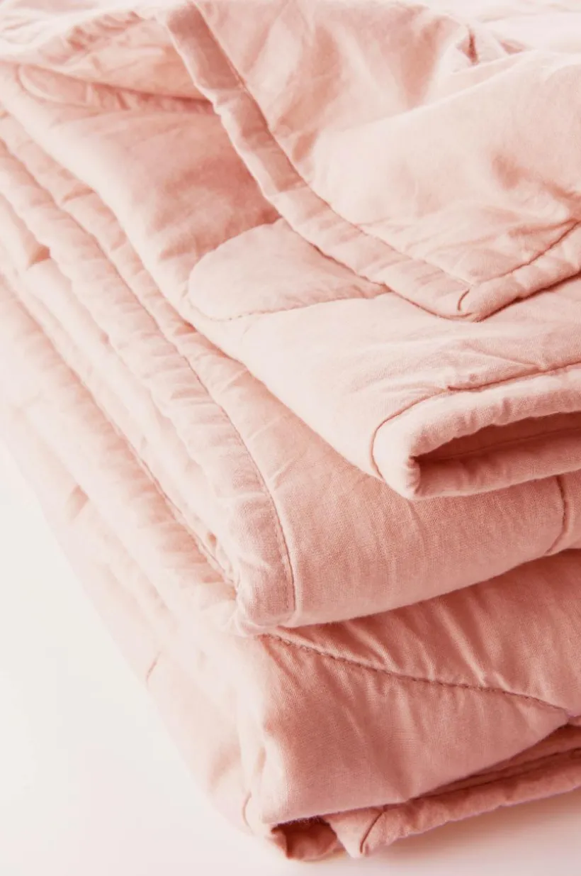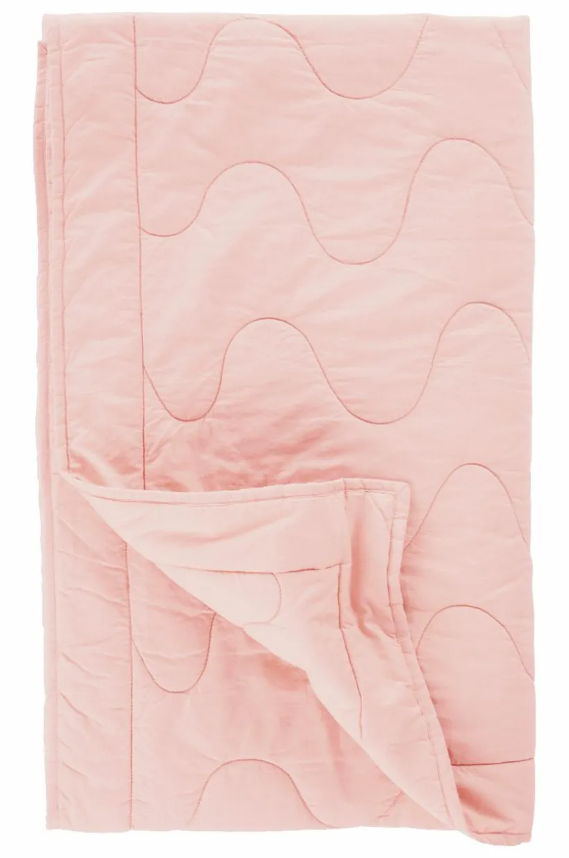Överkast som är tunt och smidigt, lätt att bädda med, skönt som extrafilt och lätt att tvätta. Tyget är av ekologisk bomull och har quiltat vågmönster, sömmen är i avvikande färg. Överkastet har vaddering av polyester som hålls på plats av sömmarna. Det sköna bomullstyget är plaggtvättat för att vara extra mjuk och skönt. Överkastet är vändbart med två lika sidor.