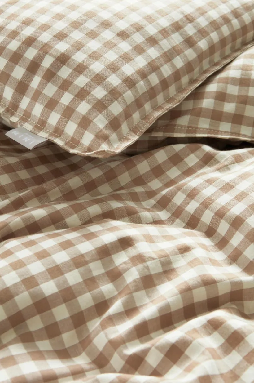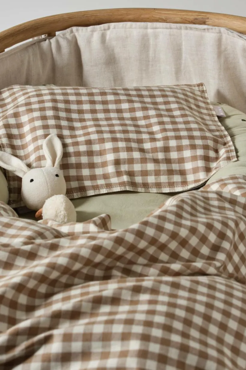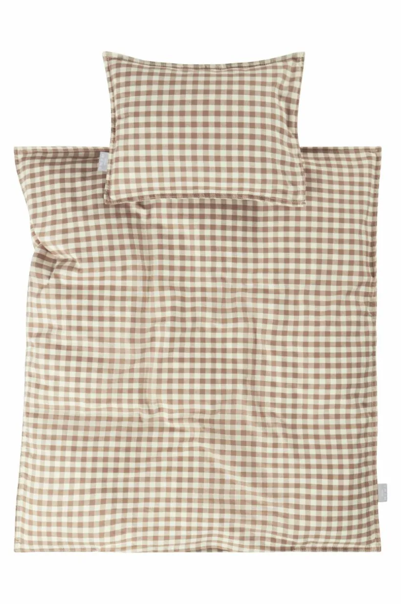 Rutvävt påslakanset med ett påslakan och ett örngott i härlig, ekologisk bomullskvalité. Setet passar bra till barnvagnen och vaggan. Tyget är tvättat för att få en mjukare känsla och bomull känns svalt och skönt mot huden. De garnfärgade rutorna går i klassiska färger, lätta att matcha med annat. Trådtäthet på 118 tc. (Trådtätheten talar om antalet trådar, thread counts, per kvadrattum i ett tyg. Ju högre trådtäthet desto högre kvalité.)