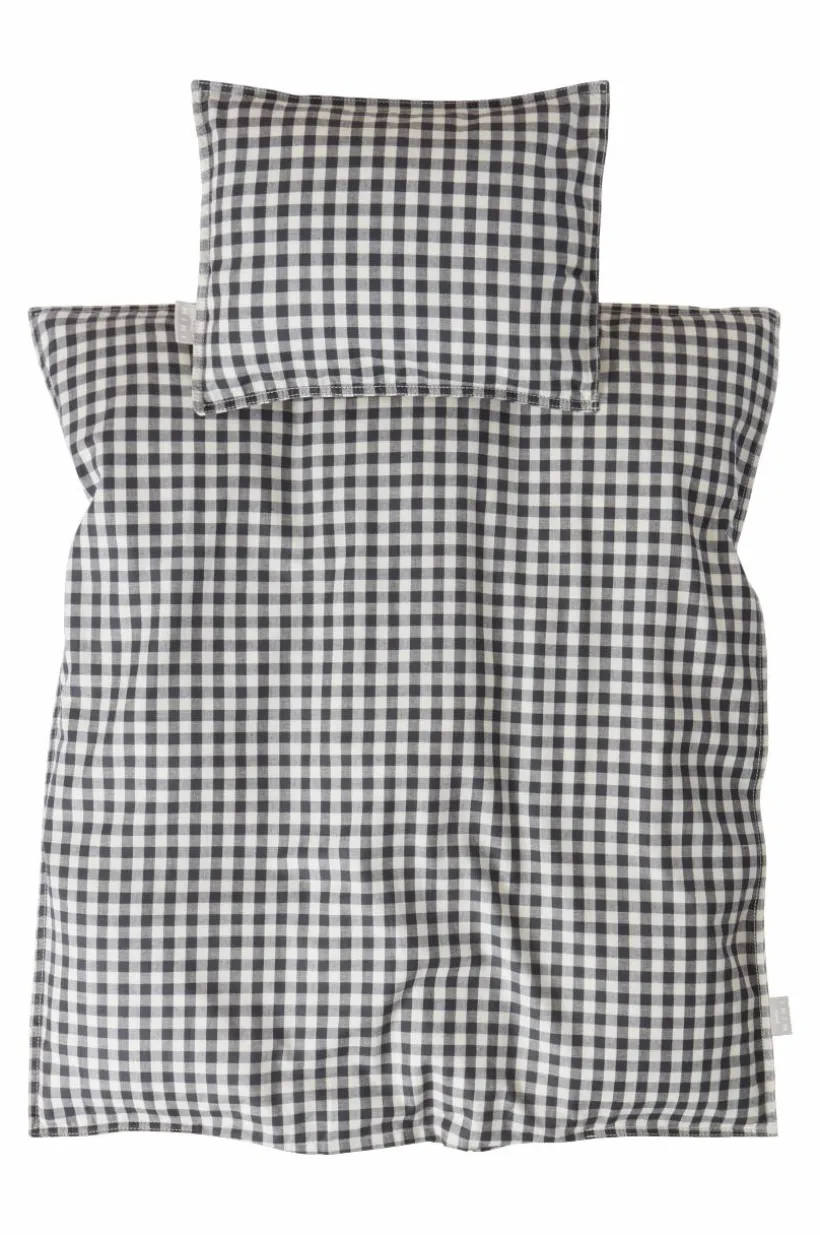 Rutvävt påslakanset med ett påslakan och ett örngott i härlig, ekologisk bomullskvalité. Setet passar bra till barnvagnen och vaggan. Tyget är tvättat för att få en mjukare känsla och bomull känns svalt och skönt mot huden. De garnfärgade rutorna går i klassiska färger, lätta att matcha med annat. Trådtäthet på 118 tc. (Trådtätheten talar om antalet trådar, thread counts, per kvadrattum i ett tyg. Ju högre trådtäthet desto högre kvalité.)
