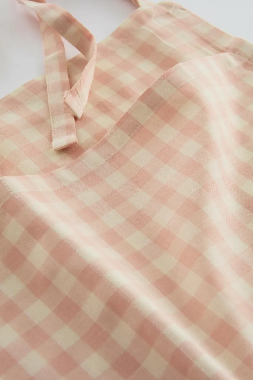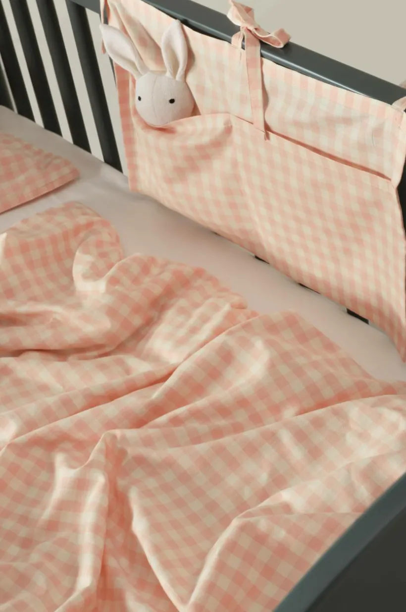 Förvaringsficka i härlig, ekologisk bomullskvalité med vävda rutor. Tyget är tvättat för att få en mjukare känsla och bomull känns svalt och skönt mot huden. De garnfärgade rutorna går i klassiska färger, lätta att matcha med annat. Förvaringsväskan knyts fast på till exempel spjälsängen och förvarar gosedjur och pyjamas. Tygets gramvikt 119 g/m².