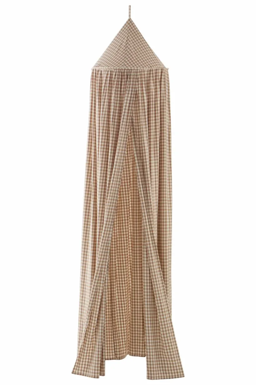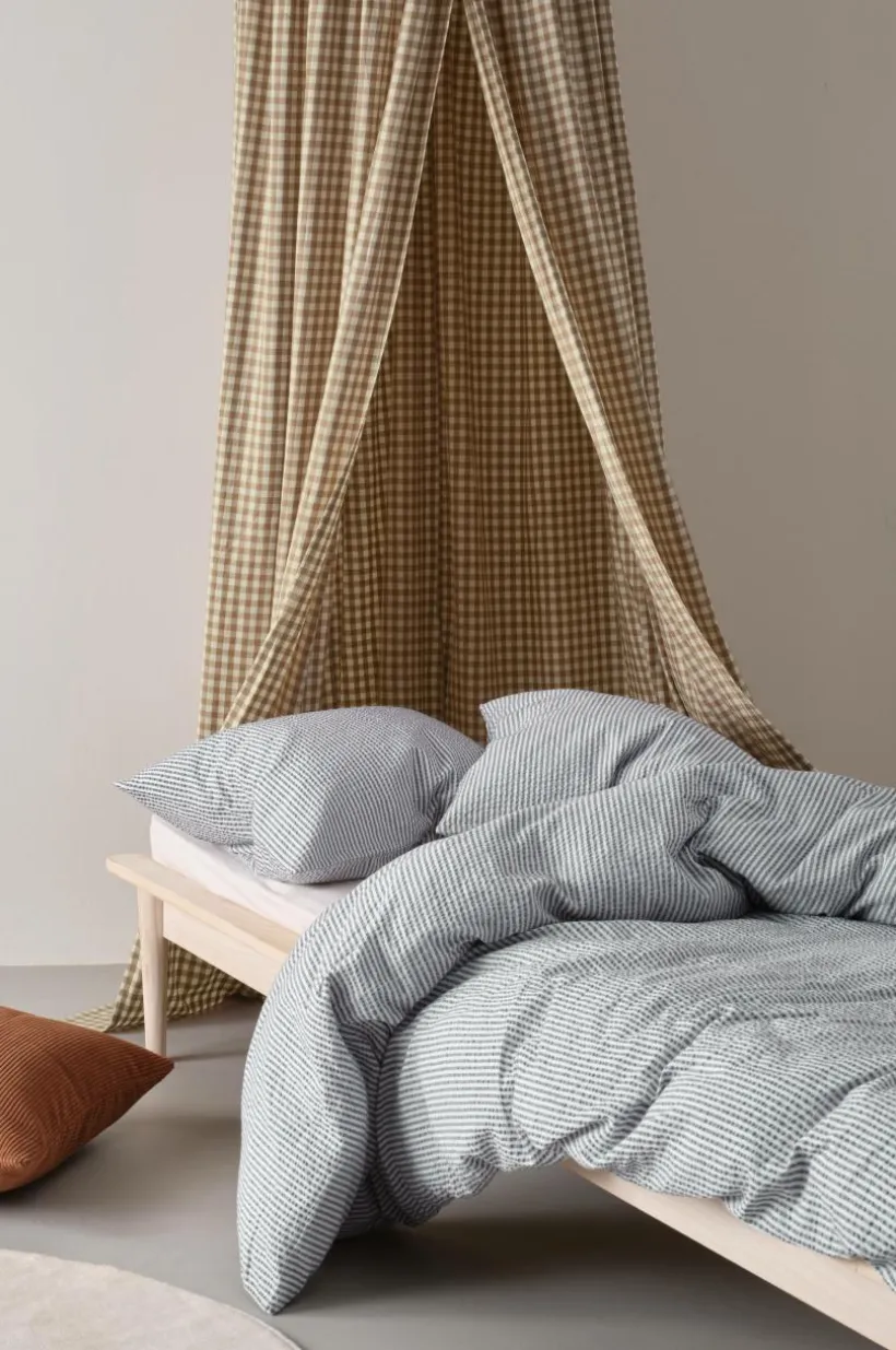 Sänghimmel i mjuk och följsam rutvävd bomull. Förtvättad för en mjuk känsla och garnfärgad för att bibehålla det livfulla gingham-mönstret. Denna sänghimmel är rund upptill och öppen framtill. En sänghimmel över barnens säng skapar en ombonad atmosfär, det kan vara lite extra mysigt att gå och lägga sig.