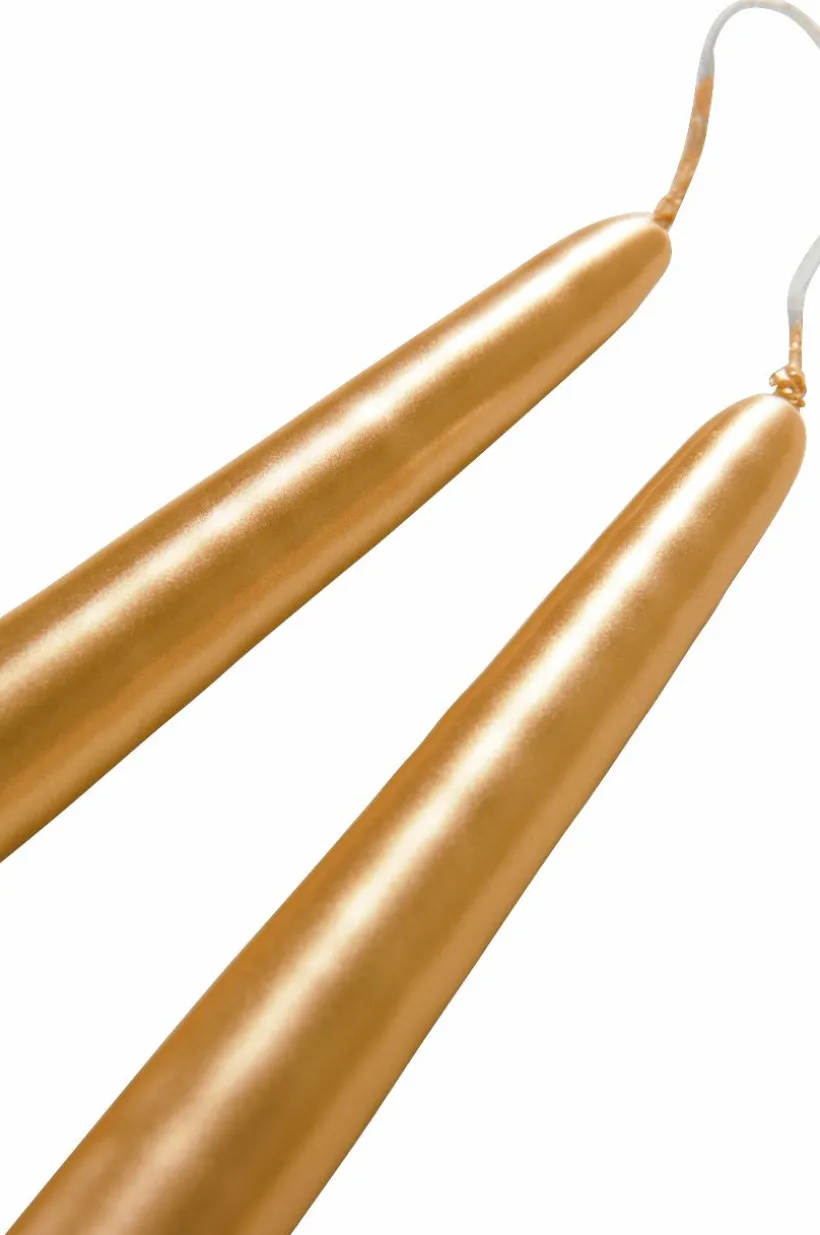 2-pack antikljus av stearin och paraffin som sedan doppats i färg med metallicfinish. Ljusen är handstöpta och tillverkade i Sverige. Att stöpa ljus för hand är en gammal och fin, svensk tradition och att tända levande ljus skapar mysig atmosfär. Stearinet innehåller inte palmolja. Paraffinet har fina brinnegenskaper och kvalitetsmärkningen RAL visar att paraffinet brinner med lite sot och rök.