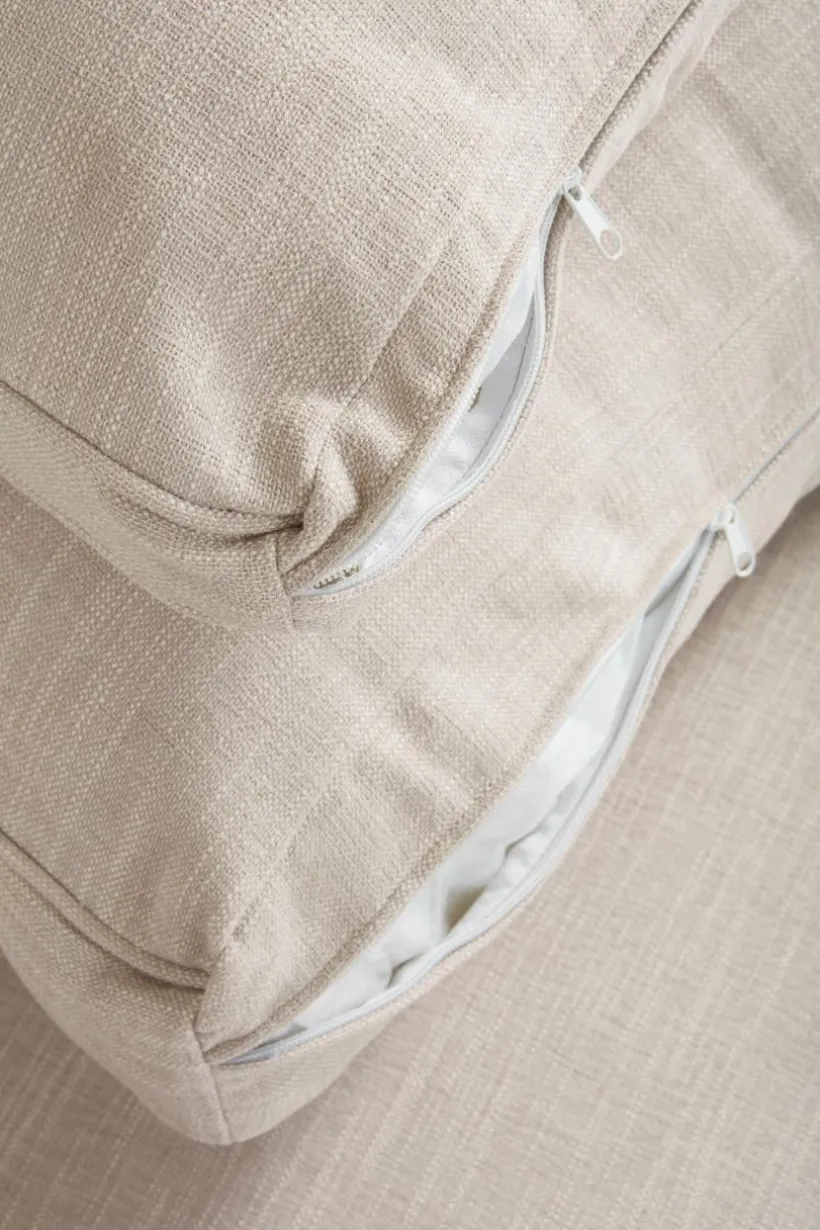 VILLACH är en inbjudande 3-sitssoffa som är mjuk i sitt formspråk. En fin detalj är att alla kuddar har fina passpoalkanter runt om. Benens form ger också karaktär. Alla trädetaljer är FSC-märkta. Klädseln är ett tåligt tyg av 80% polyester och 20% bomull med lätt struktur och melerad effekt. Tyget har mycket hög slitstyrka och tål 100000 Martindale. De två ryggkuddarna är lösa och har mjuk skumkärna som kompletteras med blåst fiber för att bli mjuka och sköna. Även sittdynorna är löstagbara, skumfyllning ger dem skön sittkomfort. Dessutom följer det med två mindre kuddar i samma stil som ger extra bekvämlighet. Armstöden har bekväm höjd. De välformade, utsvängda metallbenen har pulverlackerad yta. Stommen är av plywood. Matcha gärna soffan med fåtöljen VILLACH och skapa en mysig sittgrupp.