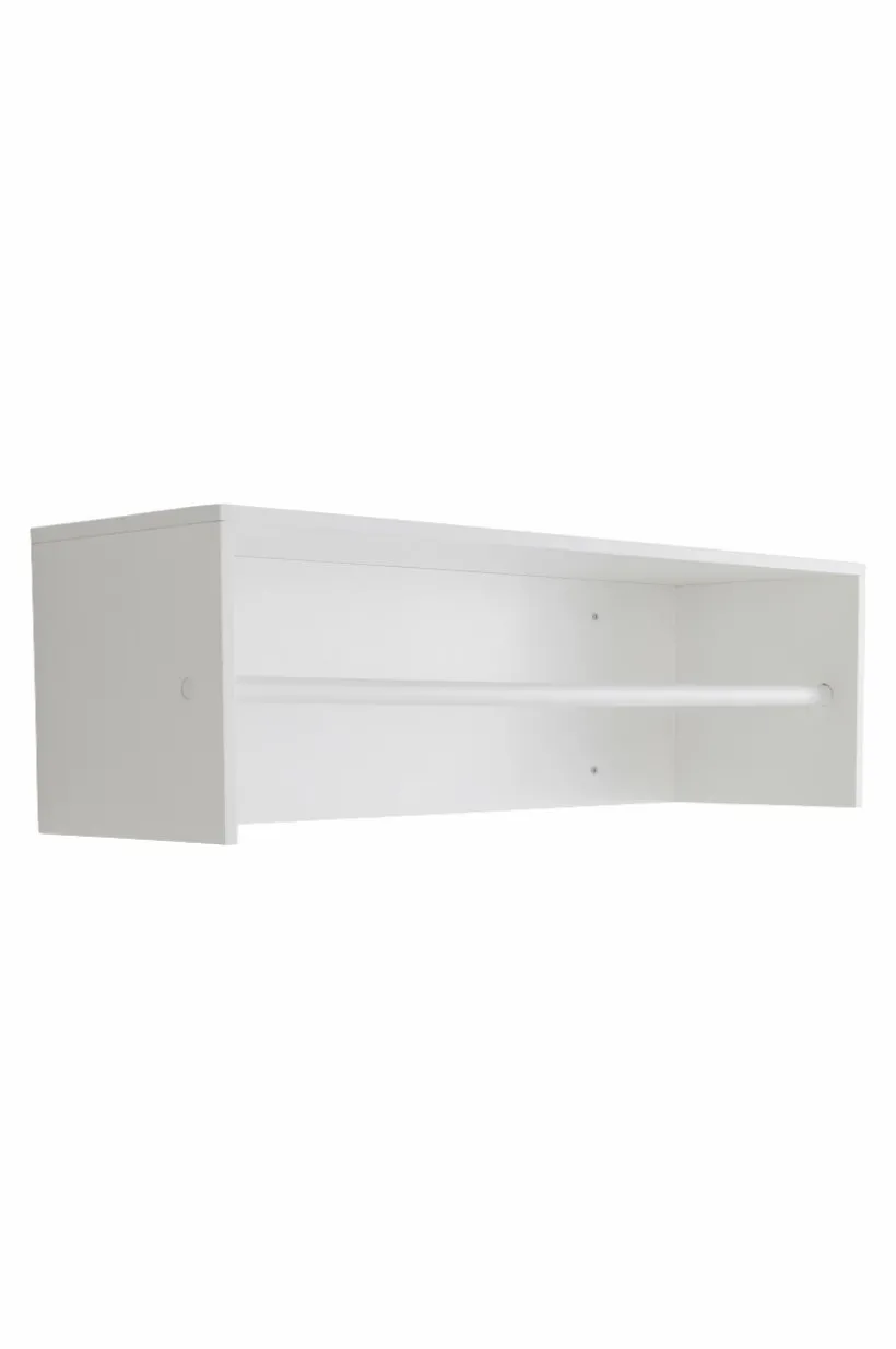Hatthylla med klädstång, tillverkad i MDF och massivt gummiträ, som målats med vattenbaserad färg. Hatthyllan monteras på väggen i den höjd du önskar och den har en klädstång för galgar till ytterkläder. Galgar medföljer ej. Viss montering krävs. Monteringsanvisning medföljer.