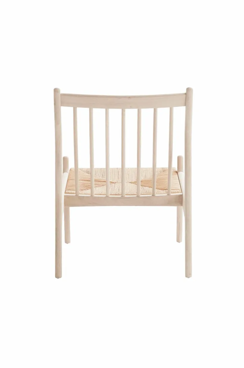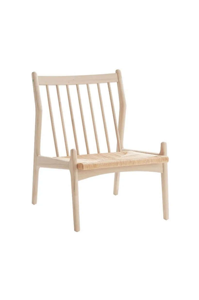 Beskrivning: Loungestol av vitsåpad ek eller mahognybetsad björk med sits av papperssnören.