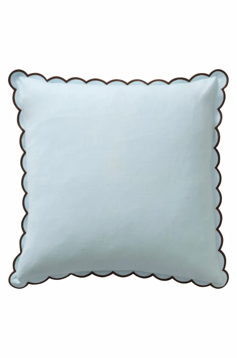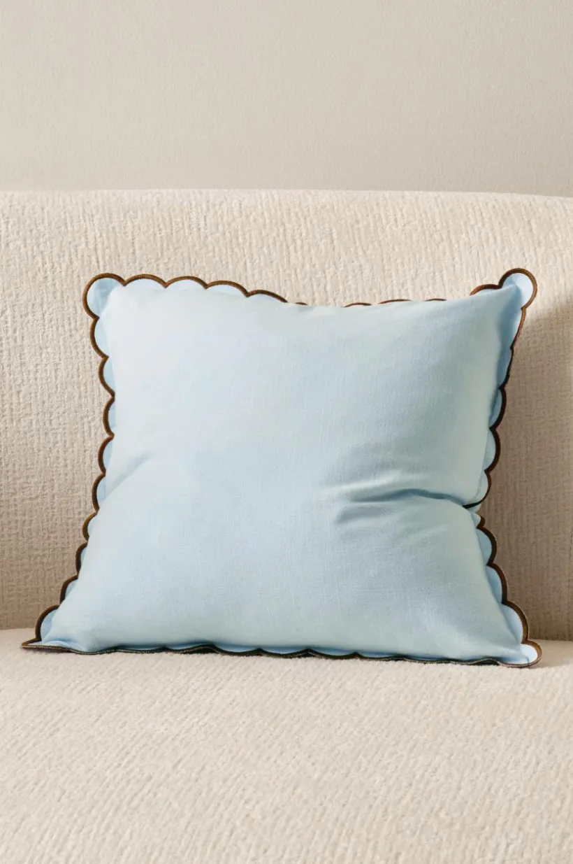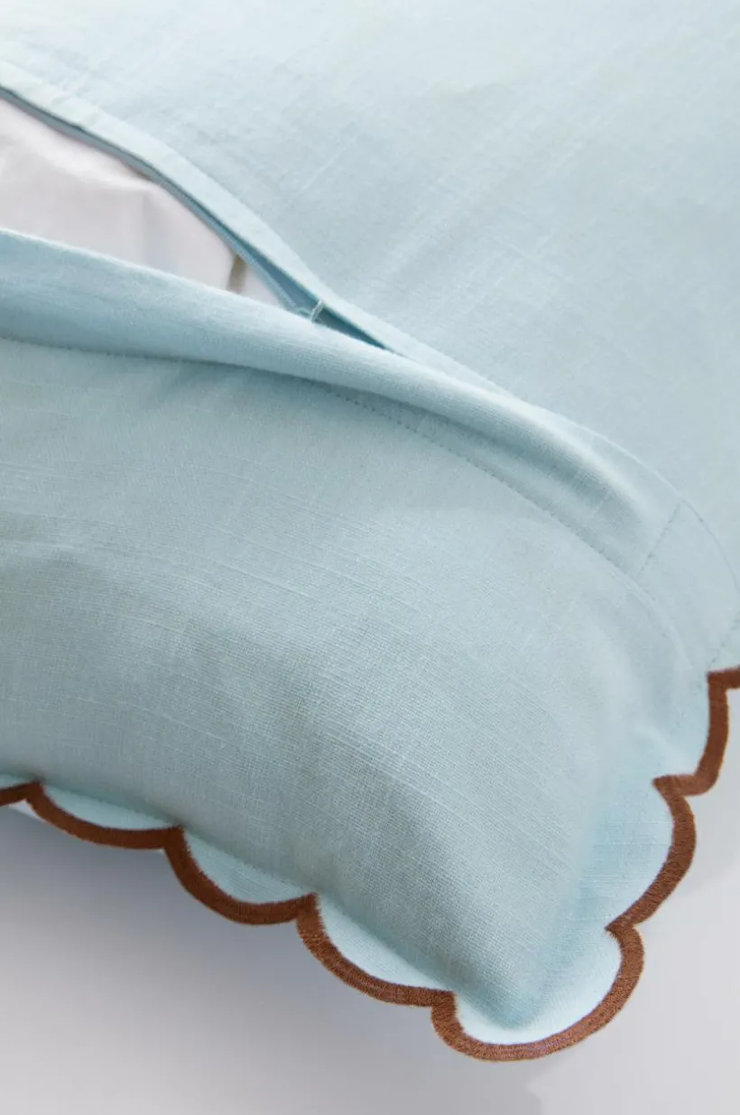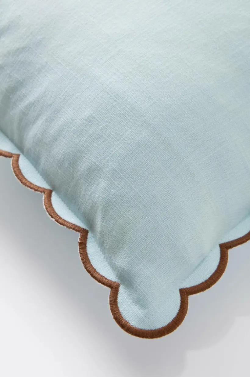 Kuddfodralet VIVIAN är tillverkat av bomull med en oregelbunden struktur som uppnås genom varierad garntjocklek. Tyget är enfärgat med en vågformad kant och overlocksömmar som ger ett snyggt utseende. Dragkedja för enkel öppning och stängning.