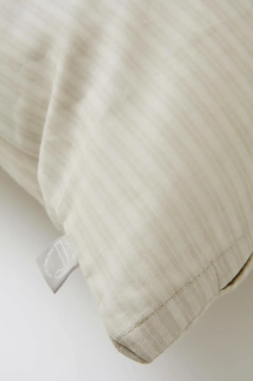 1-pack kuddfodral av skir och krispig voile med enfärgat, ljust foder. Det fina, smalrandiga mönstertrycket får kuddfodralets foder som bakgrund och du behöver inte tänka på vilken innerkudde du väljer trots att voiletyget har viss transparens. Dragkedja i nederkant.