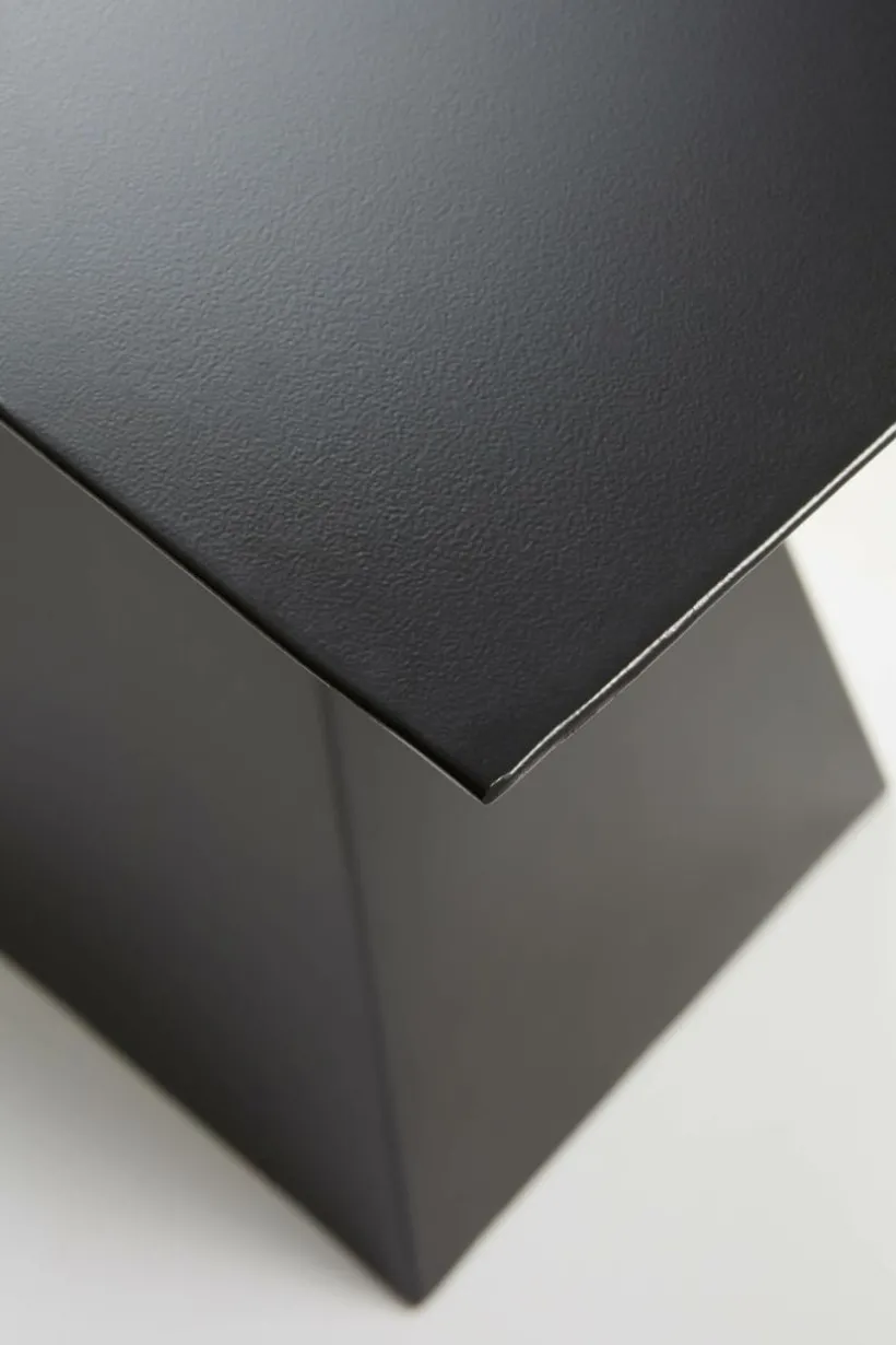 Sidobord i järn med mattlackad yta. WELS är speciell i sin lite kaxiga design och blir en möbel som får uppmärksamhet. Hela bordet är pulverlackerat.