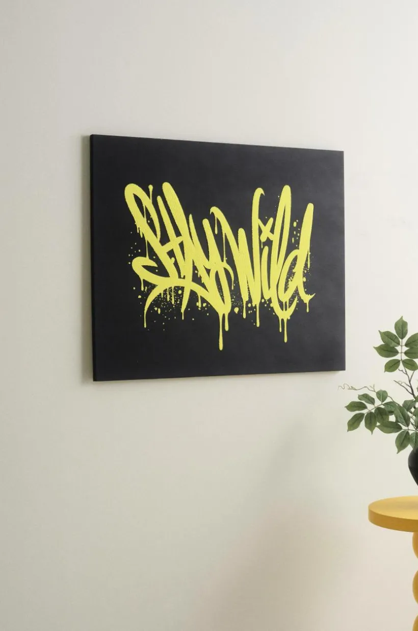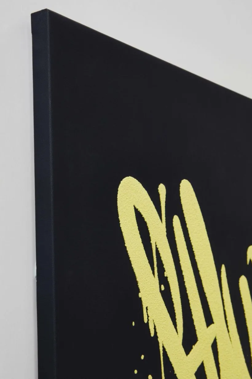 Canvastavla med graffiti-inspirerat motiv som har läcker 3D-effekt. Canvasduken är sträckt över en MDF-ram. Canvastavlan har två hängare på baksidan och är färdig att hängas upp när den kommer hem.