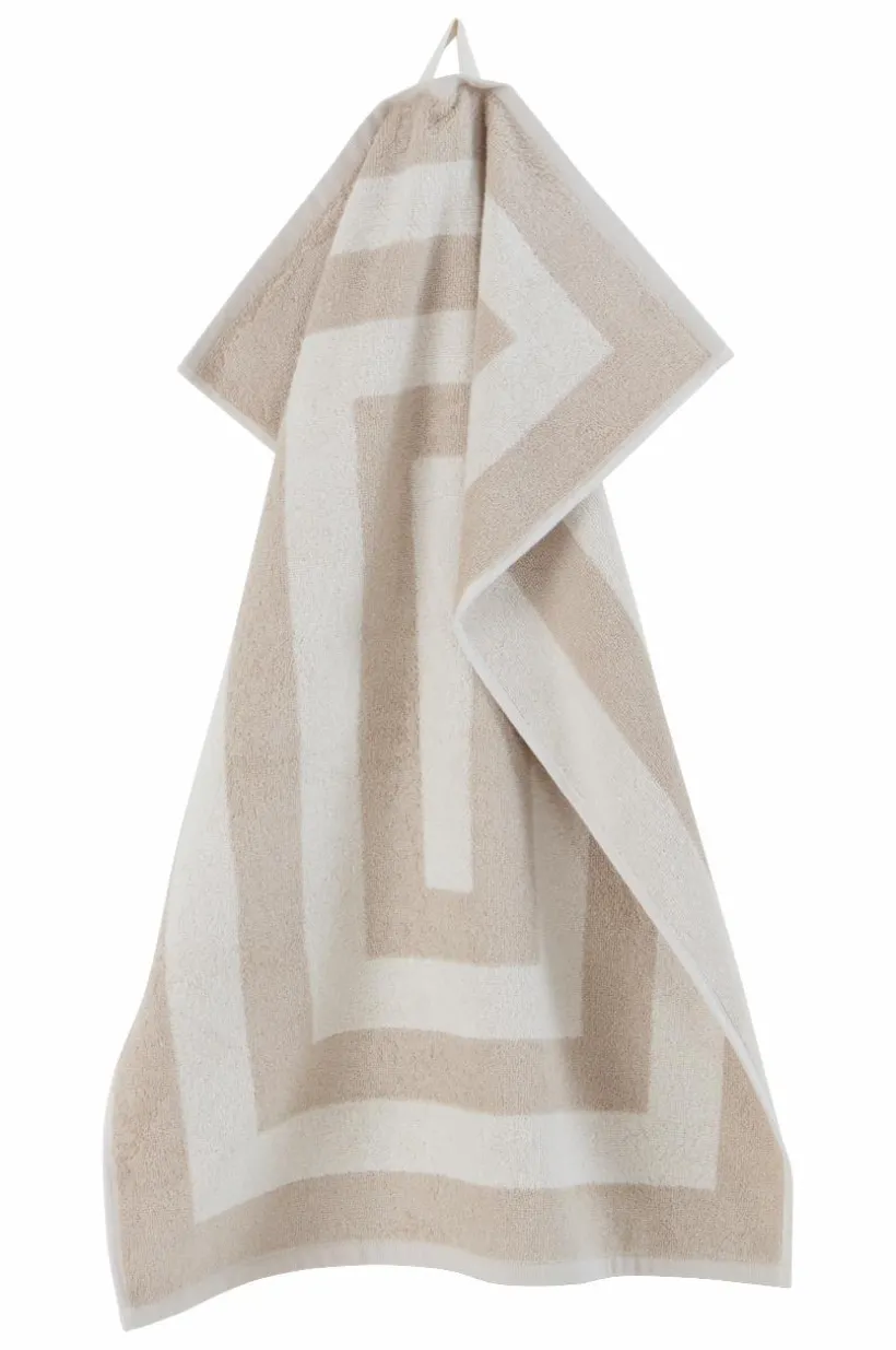WILLIAM frottéhandduk ger din badrumsinredning en lyxig känsla, vävd av dubbelt garn för en mjuk, mysig känsla. Handdukarna har ett unikt rutmönster som skapar en randig effekt som framhävs när de hängs upp.