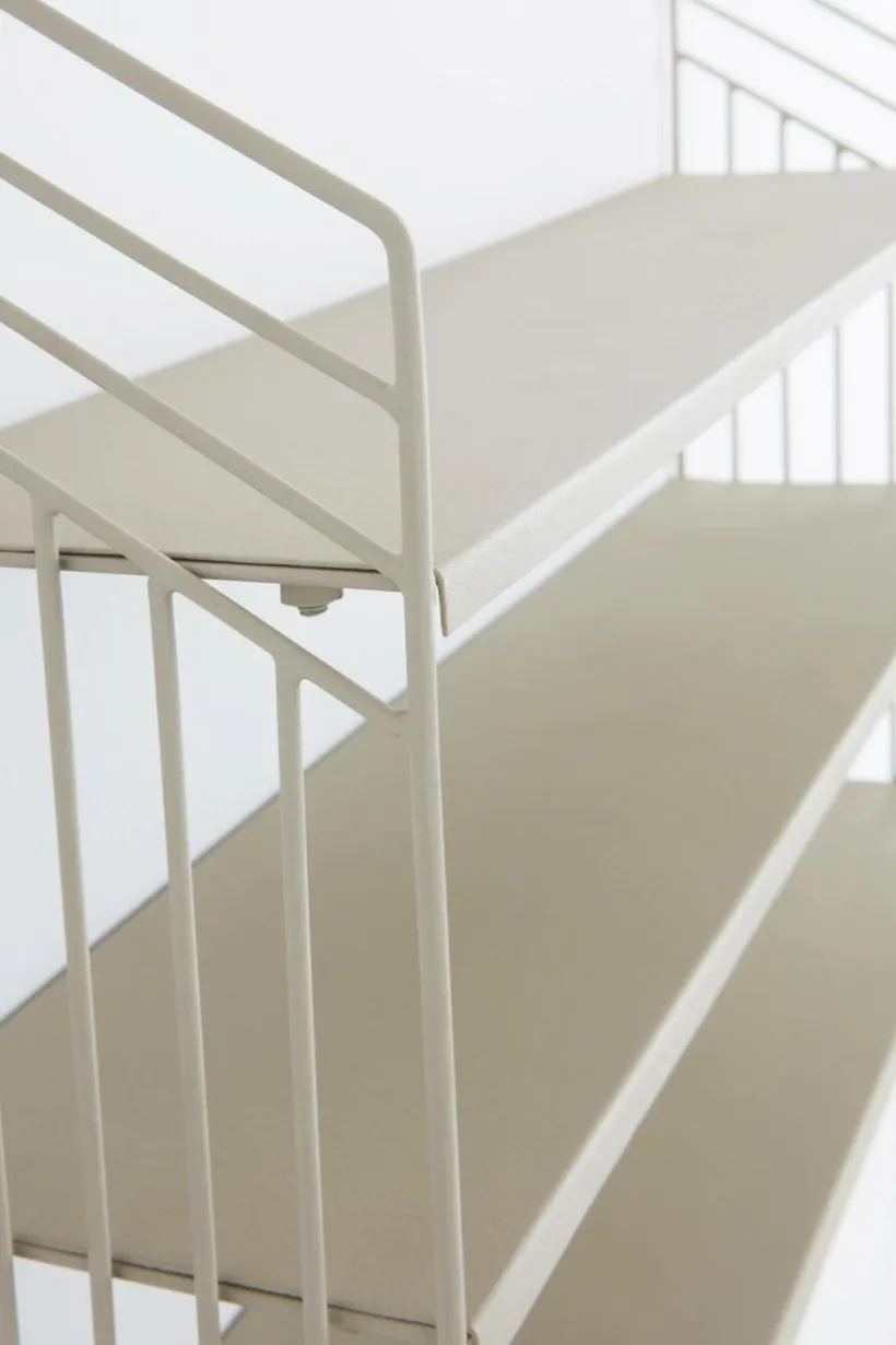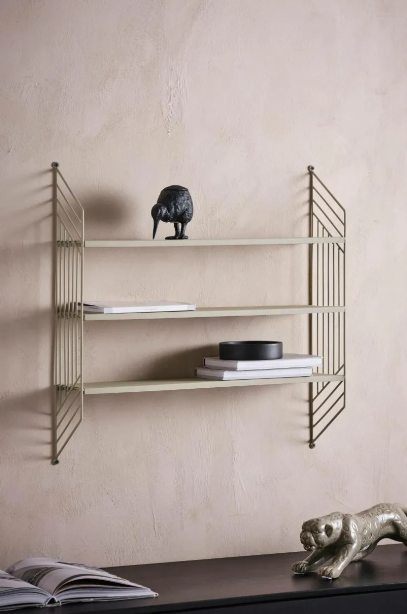 Vägghylla av pulverlackad metall med retrokänsla. Hål för upphängning. Maxbelastning 15 kg.