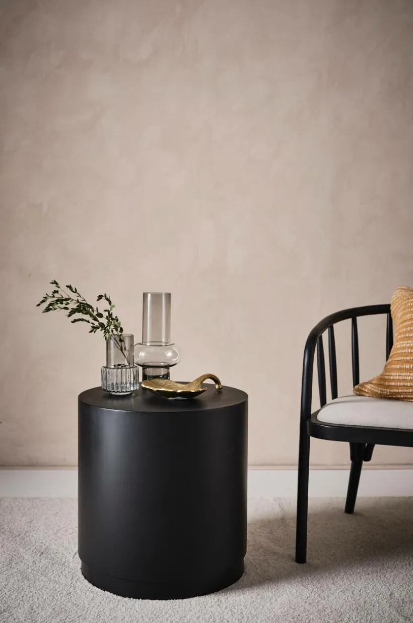Runt sidobord av järn. Snyggt cylinderformat och ihåligt, med en liten kant nedtill som signalerar avslut. Det svarta bordet är pulverlackerat med matt yta. Det guldfärgade har en fin plätering. Stilrent och placeringen är mycket flexibel. Utöver att matcha fåtöljen i vardagsrummet passar WITTEN perfekt som sängbord eller hallbord.