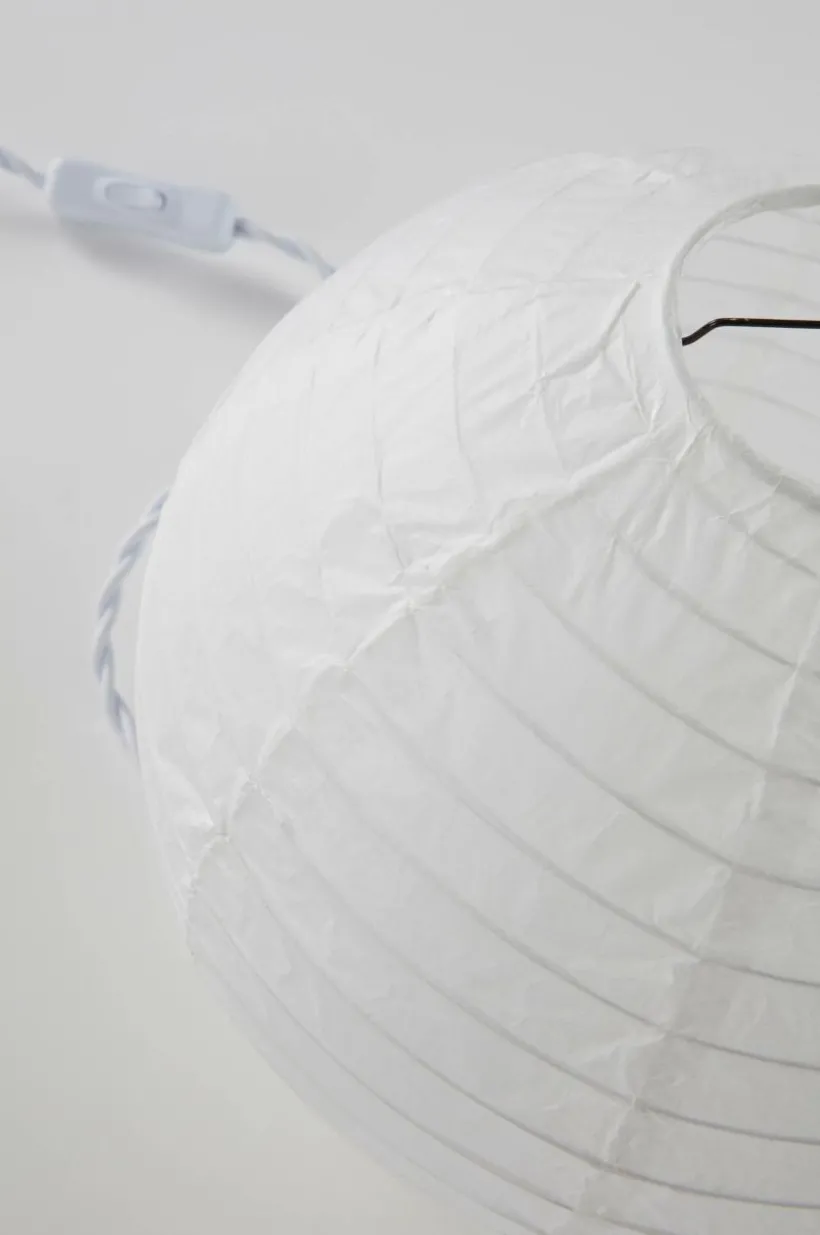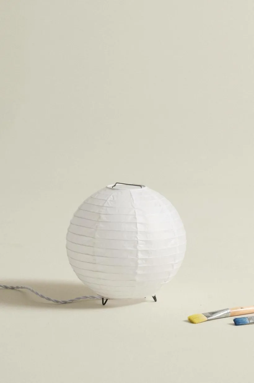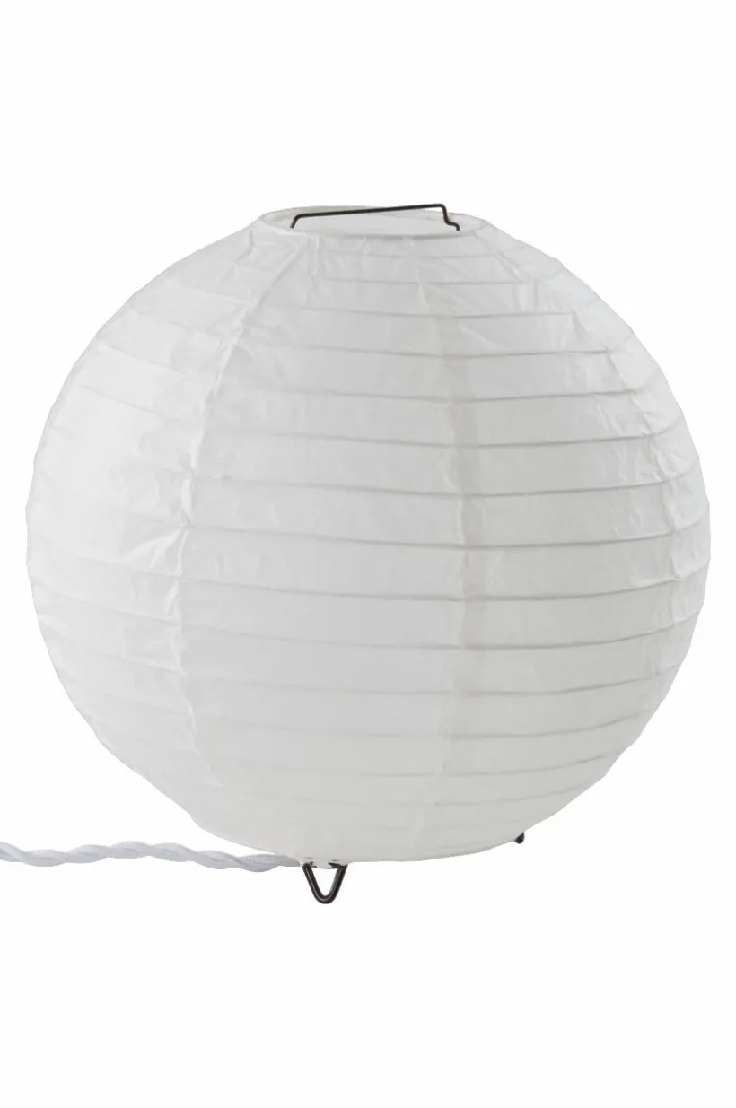 Bordslampa av papper och med stomme av svart metall. Det runda klotet ger ett mjukt, mysigt sken. Bordslampan har tvinnad textilsladd med strömbrytare på sladden och väggkontakt. Lampan är ojordad, klass 2.