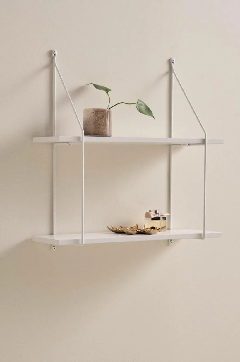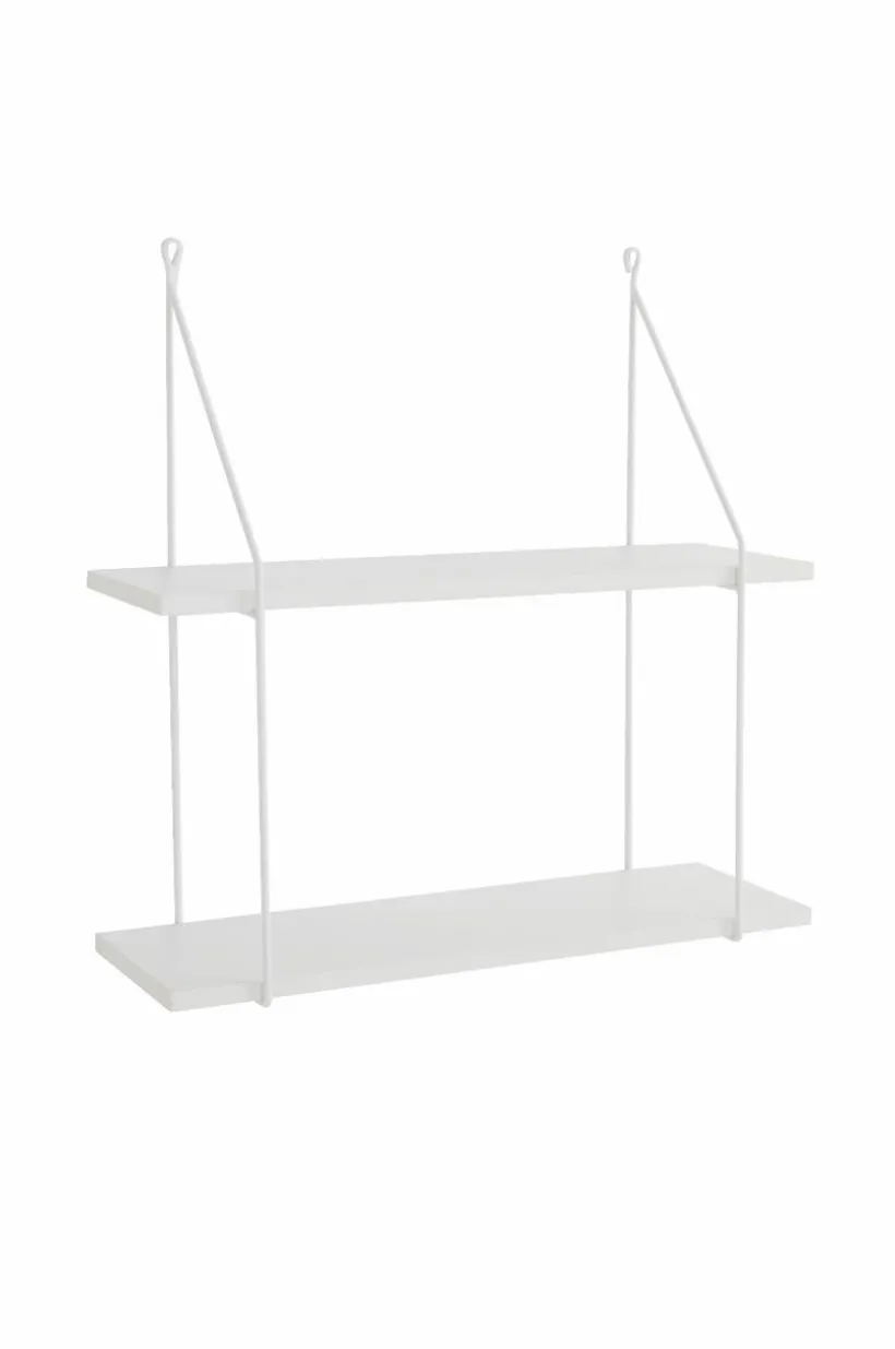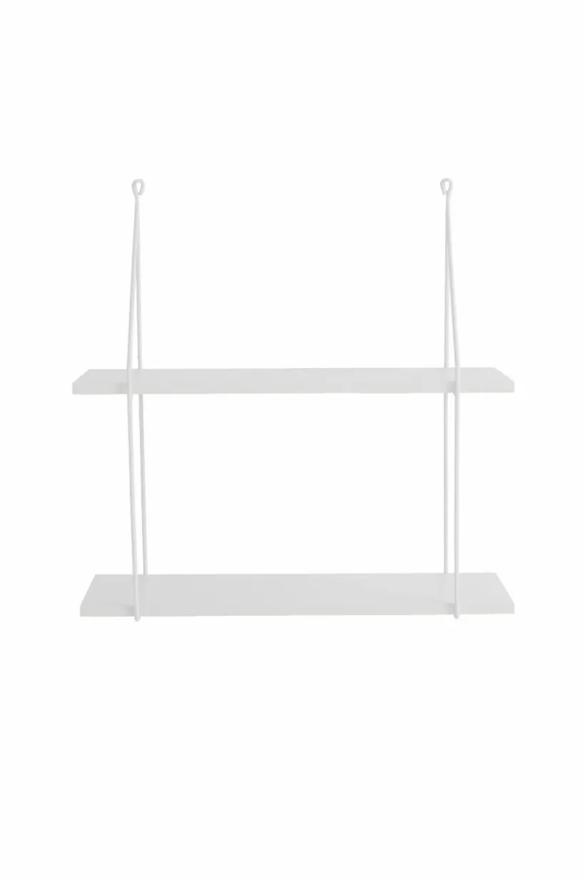 Vägghylla av pulverlackad melamin med hål för upphängning. En praktisk och stilren hylla som passar in i de flesta hem och stilar. Viss montering krävs. Monteringsanvisning medföljer.