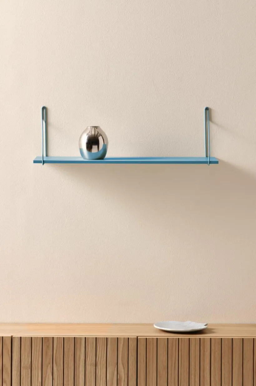 Vägghylla av pulverlackad melamin med hål för upphängning. En praktisk och stilren hylla som passar in i de flesta hem och stilar. Viss montering krävs. Monteringsanvisning medföljer.
