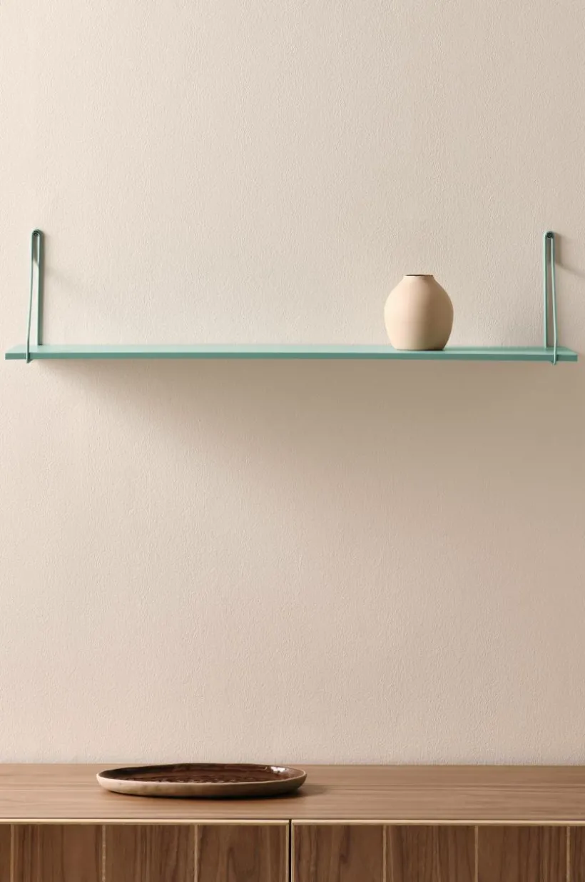 Vägghylla av pulverlackad melamin med hål för upphängning. En praktisk och stilren hylla som passar in i de flesta hem och stilar. Viss montering krävs. Monteringsanvisning medföljer.