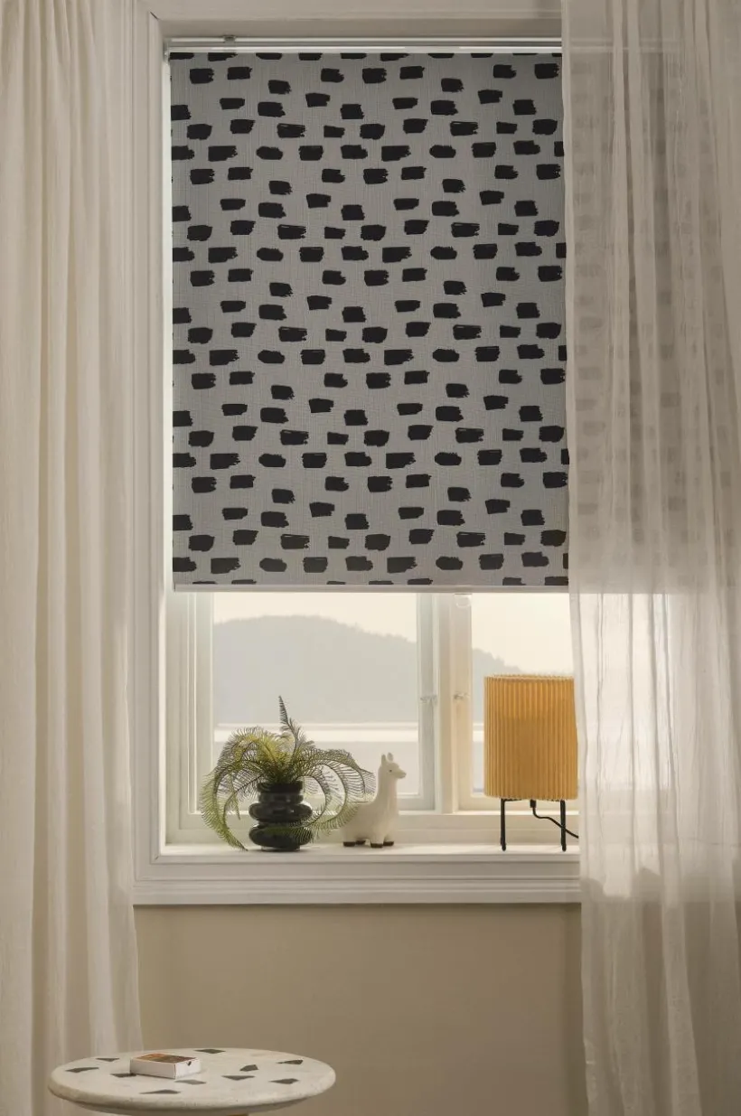 WYANDRA är en mörkläggande rullgardin av polyester. Det kraftiga tyget blockerar ut ljuset och mörklägger barnkammaren, sovrummet eller tv-rummet. Rullgardinen har metallfäste upptill som du fäster i väggen. Nedtill sitter en rund metallstav. Ett transparent plastgrepp på den nedre staven gör att du enkelt drar ned och skjuter upp rullgardinen. Rullgardinen har mönster av penseldrag på sidan som är in mot rummet och ljusblockerande beläggning på baksidan. Fästen ingår. Enkel att montera. Monteringsanvisning medföljer.