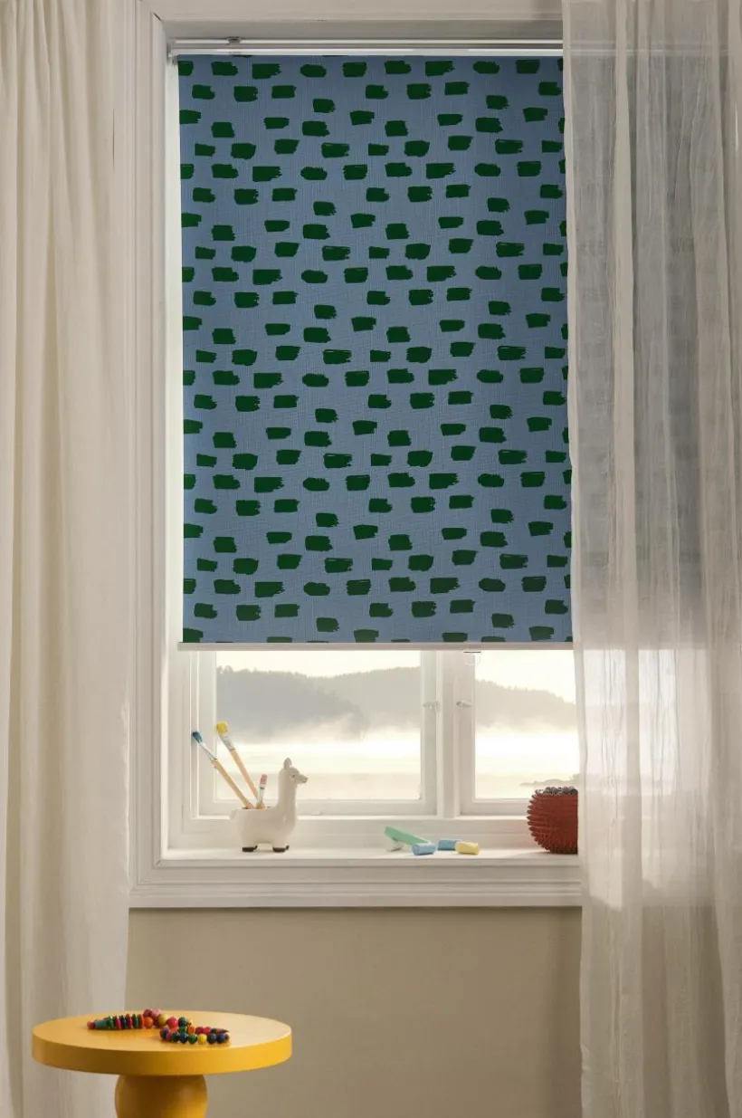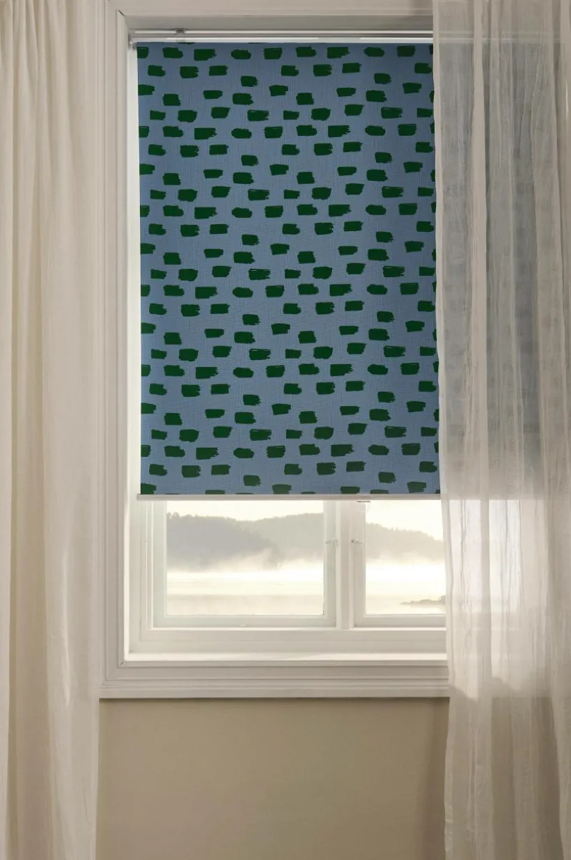 WYANDRA är en mörkläggande rullgardin av polyester. Det kraftiga tyget blockerar ut ljuset och mörklägger barnkammaren, sovrummet eller tv-rummet. Rullgardinen har metallfäste upptill som du fäster i väggen. Nedtill sitter en rund metallstav. Ett transparent plastgrepp på den nedre staven gör att du enkelt drar ned och skjuter upp rullgardinen. Rullgardinen har mönster av penseldrag på sidan som är in mot rummet och ljusblockerande beläggning på baksidan. Fästen ingår. Enkel att montera. Monteringsanvisning medföljer.