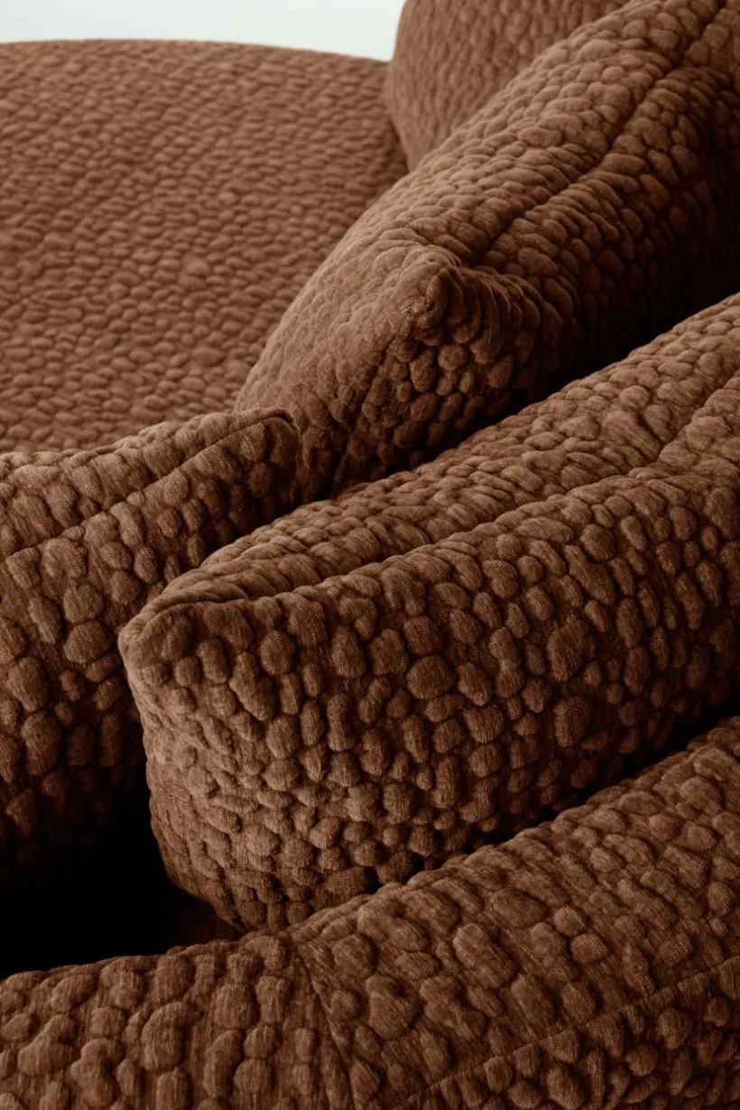 WYOMING soffa för två ger en mysig känsla i vardagsrummet eller sovrummet med sin inbjudande runda design. Soffan är tillverkad med skum, sicksackfjädring, elastiskt band och bekväm stoppning, vilket garanterar en mysig och stödjande sittupplevelse. De fem ryggkuddarna, fyllda med fjäder och polyester, ger extra komfort. Kuddfodralet är avtagbart och har en dragkedja längs nederkanten för enkelt underhåll, men yttertyget är inte avtagbart.