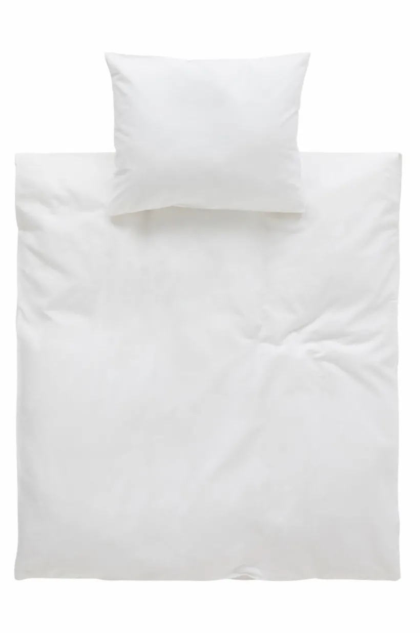 Enfärgat påslakanset i 2 delar av ekologisk bomull. Påslakansetet passar till barnvagn och vagga. Att bädda med bomull är luftigt och mjukt mot kroppen. Öppning i övre hörnen på påslakanet, som underlättar att trä påslakanet över täcket. Trådtäthet på 144 tc. (Trådtätheten talar om antalet trådar, thread counts, per kvadrattum i ett tyg. Ju högre trådtäthet desto högre kvalité).