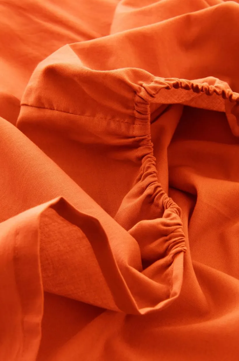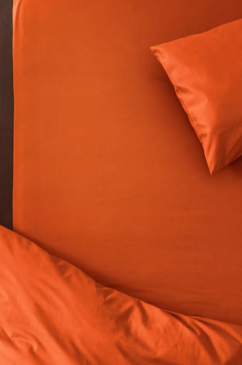 Enfärgade dra-på-lakan i ekologisk bomull med resår. Att bädda i ekologisk bomull är luftigt, mjukt och lättskött. Den elastiska kanten gör att lakanet sitter bra på madrassen. Perfekta sängkläder för stor som liten, för familjen på landet och för singeln i stan. Trådtäthet på 144 tc. (Trådtätheten talar om antalet trådar, thread counts, per kvadrattum i ett tyg. Ju högre trådtäthet desto högre kvalité).