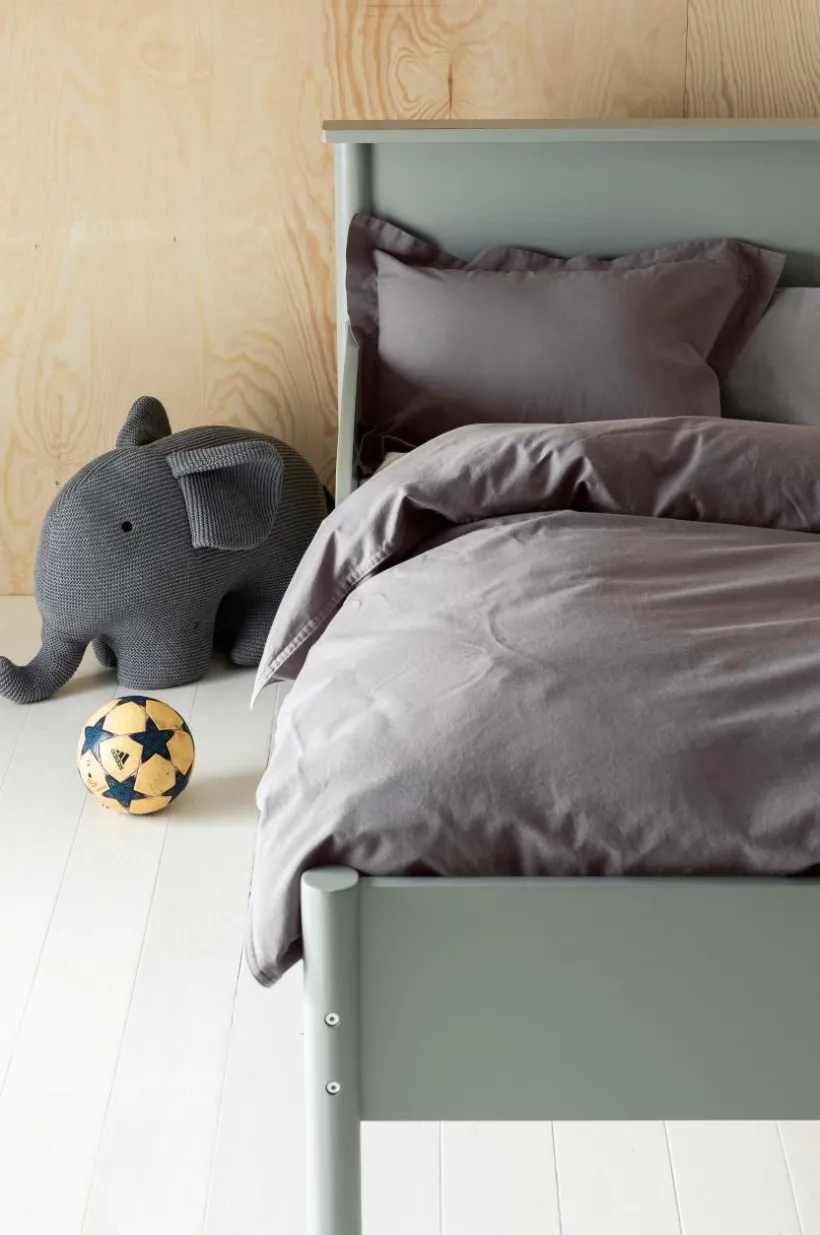 Enfärgat påslakanset i 2 delar av ekologisk bomull. Påslakansetet passar till spjälsäng. Setet är plaggtvättat vilket innebär att det tvättats efter sömnad och känslan blir extra mjuk och skön. Dubbelsömmar. Örngottet har 3 cm bred vinge runt om. Setet kommer i en fin tygpåse med tryck och dragskoöppning. Trådtäthet på 120 tc. (Trådtätheten talar om antalet trådar, thread counts, per kvadrattum i ett tyg. Ju högre trådtäthet desto högre kvalité).