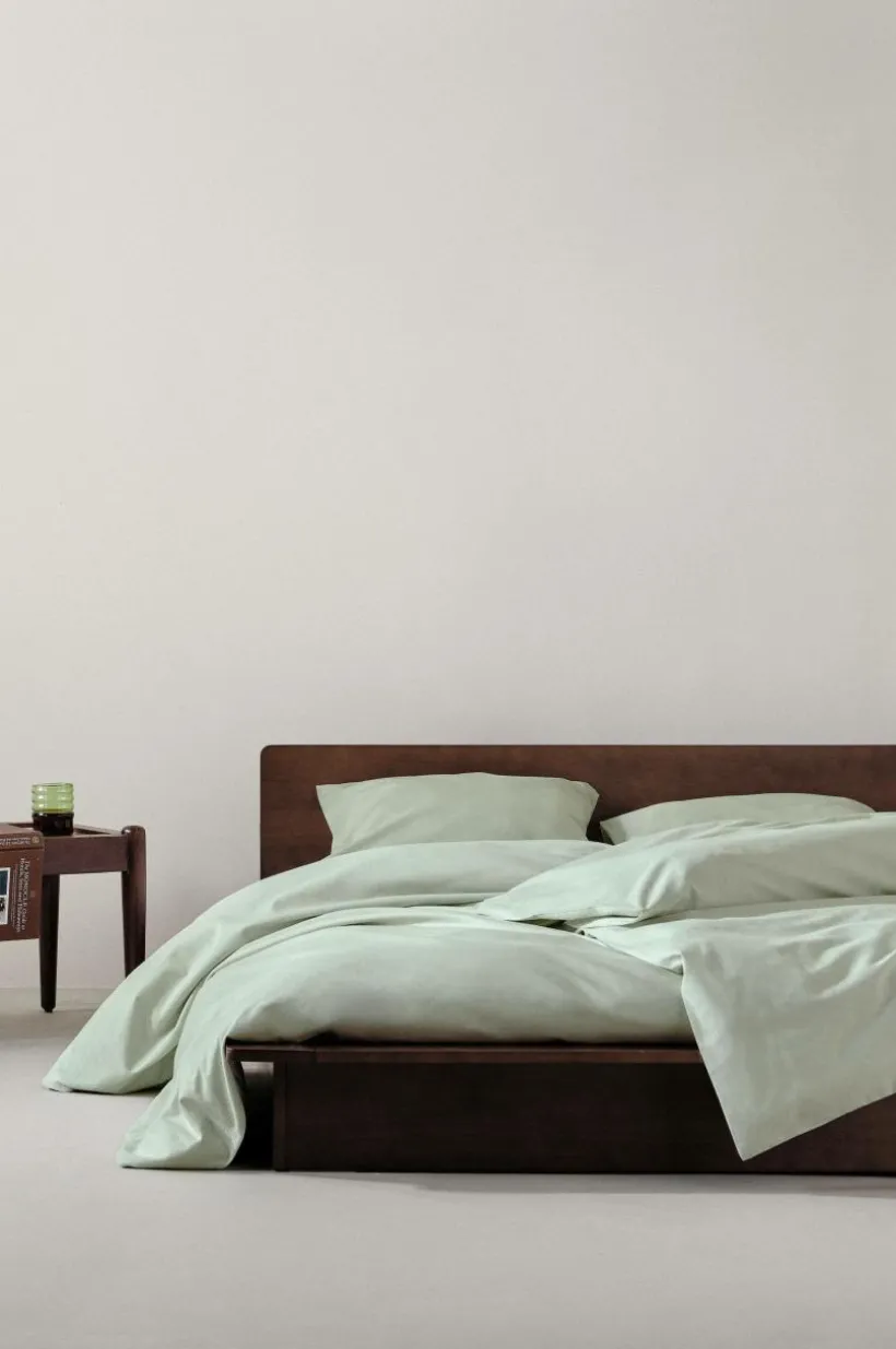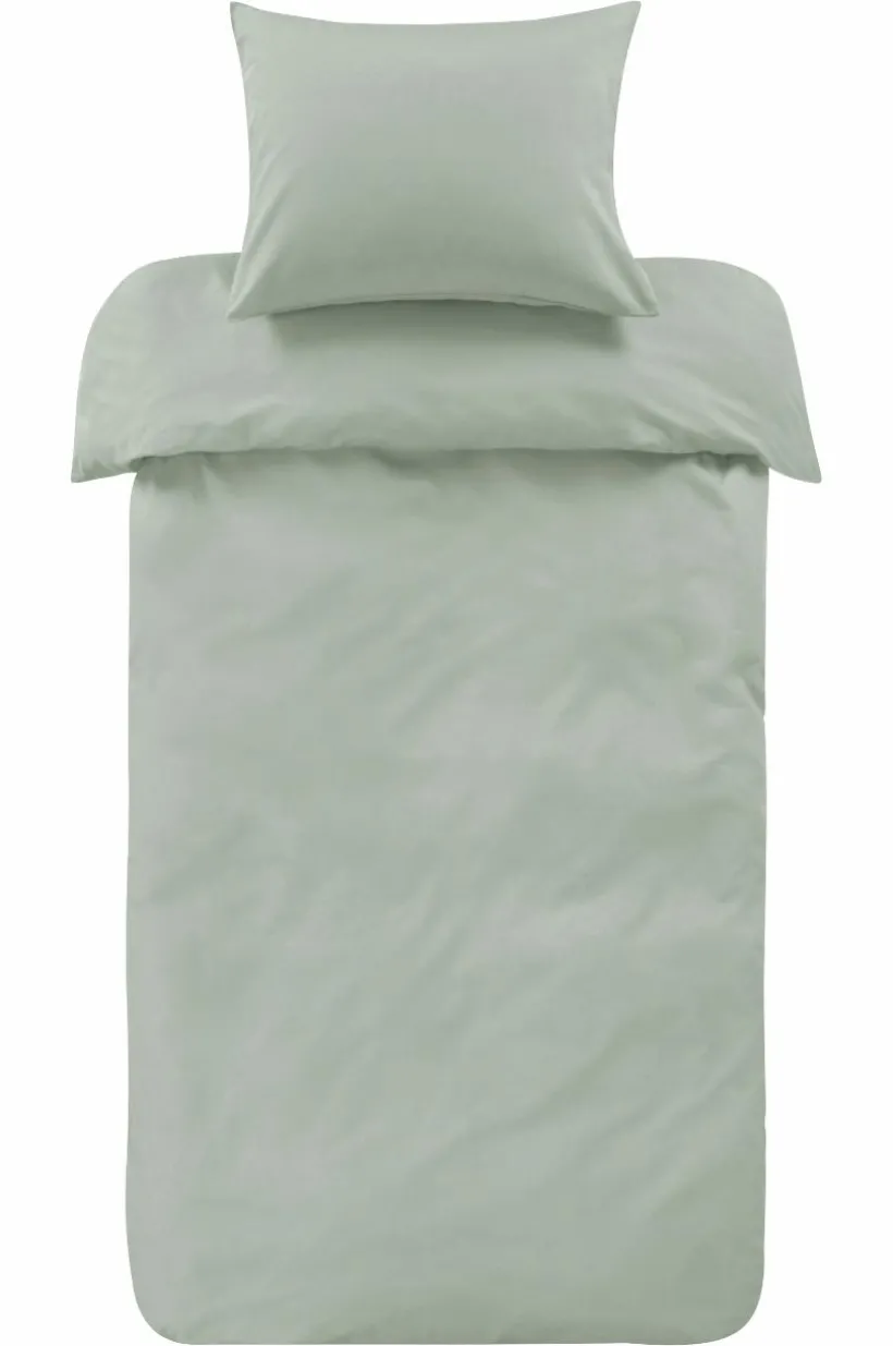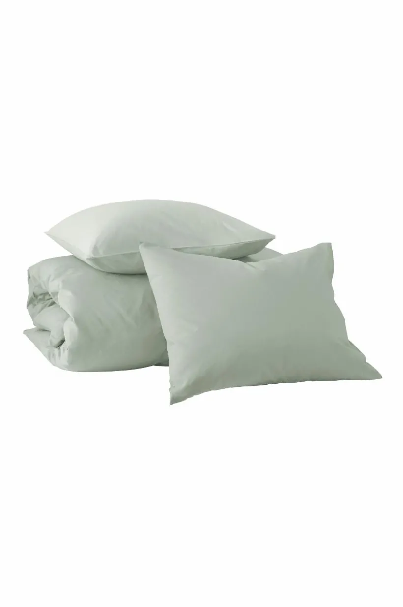 Enfärgat påslakanset i 2 delar av ekologisk bomull. Öppning i övre hörnen på påslakanet, som underlättar att trä påslakanet över täcket. Trådtäthet på 144 tc. (Trådtätheten talar om antalet trådar, thread counts, per kvadrattum i ett tyg. Ju högre trådtäthet desto högre kvalité).