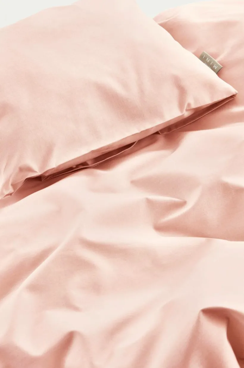 Enfärgat påslakanset i två delar, ett påslakan och ett örngott, i underbar percale av ekologisk bomull. Setet passar till vagga och barnvagn. Percale är ett extra mjukt och behagligt tyg som vävts med tunna, fina bomullstrådar. Trådtäthet på 200 tc. (Trådtätheten talar om antalet trådar, thread counts, per kvadrattum i ett tyg. Ju högre trådtäthet desto högre kvalité.)