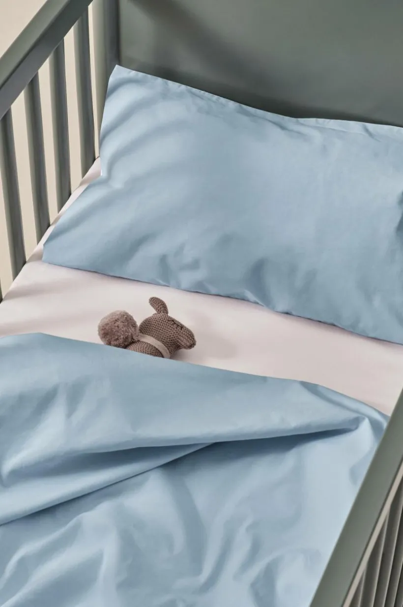 Enfärgat påslakanset i två delar, ett påslakan och ett örngott, i underbar percale av ekologisk bomull. Setet passar till spjälsäng. Percale är ett extra mjukt och behagligt tyg som vävts med tunna, fina bomullstrådar. Trådtäthet på 200 tc. (Trådtätheten talar om antalet trådar, thread counts, per kvadrattum i ett tyg. Ju högre trådtäthet desto högre kvalité.)
