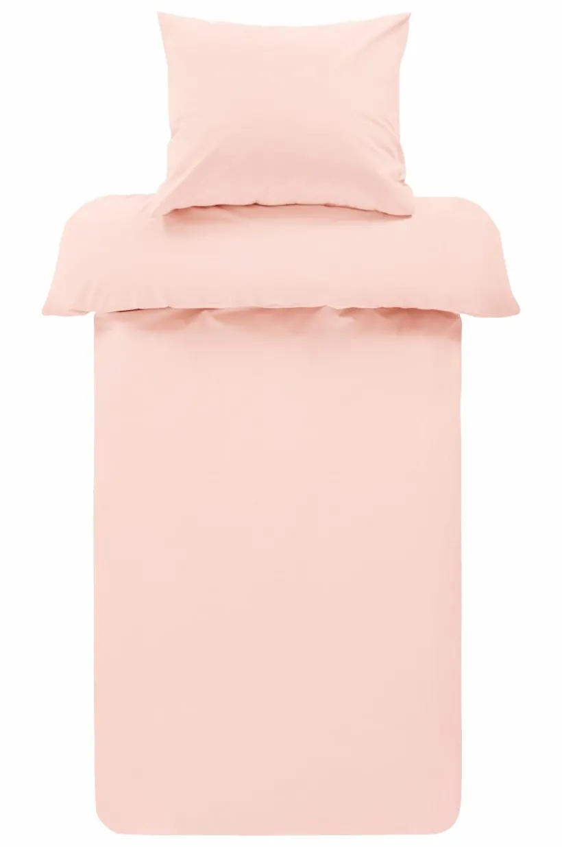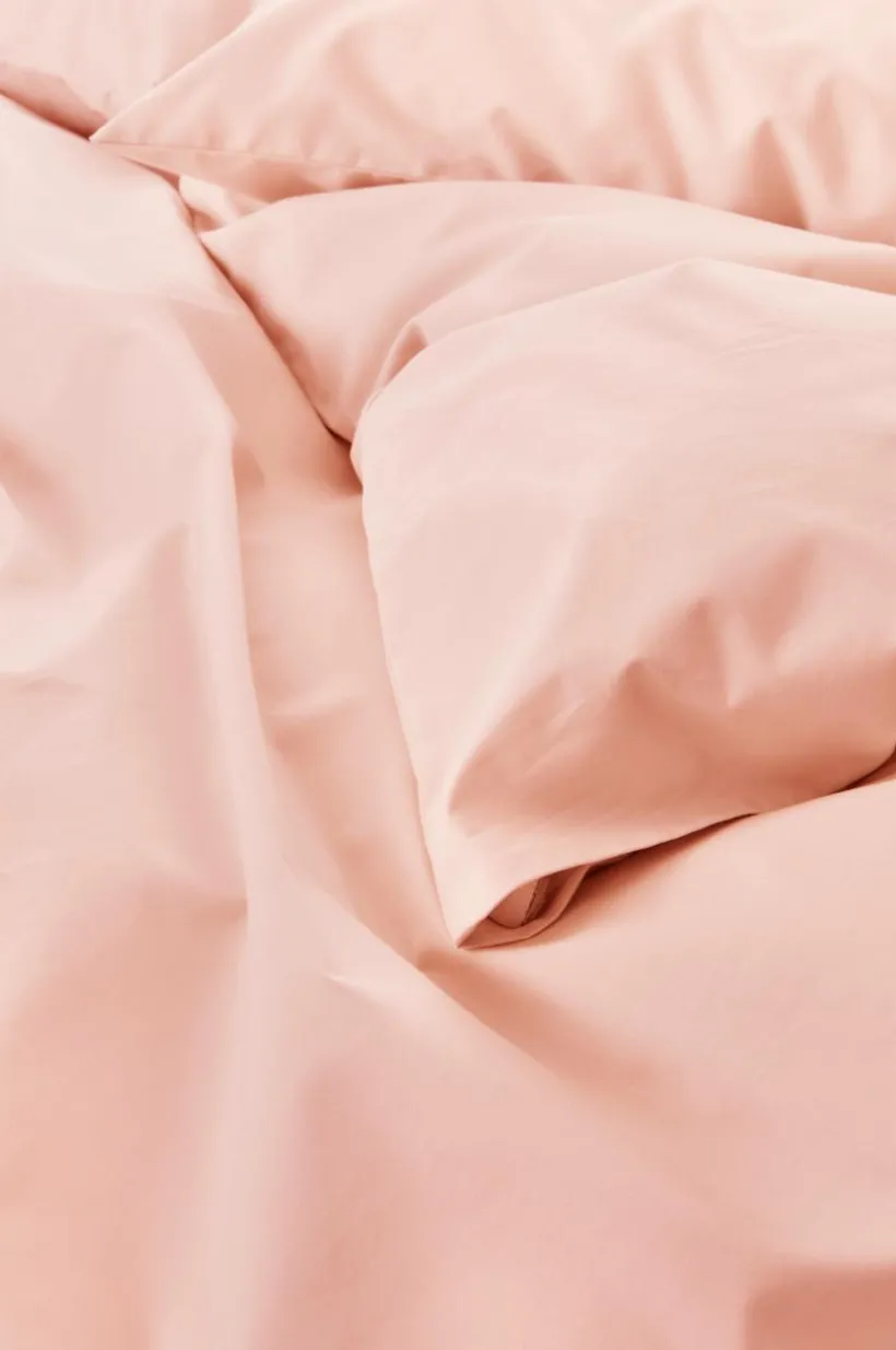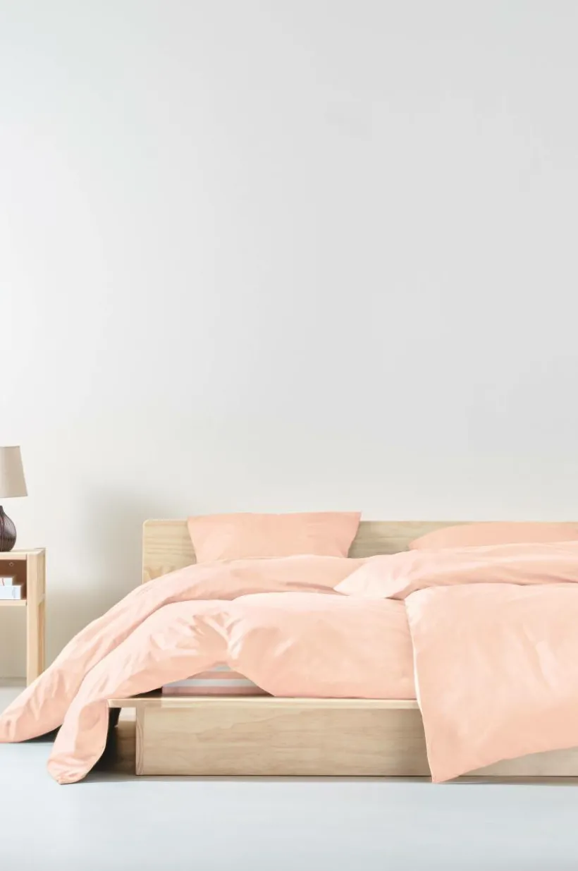 Enfärgat påslakanset i två delar, ett påslakan och ett örngott i underbar percale av ekologisk bomull. Percale är ett extra mjukt och behagligt tyg som vävts med tunna, fina bomullstrådar. Öppning i övre hörnen på påslakanet, som underlättar att trä påslakanet över täcket. Trådtäthet på 200 tc. (Trådtätheten talar om antalet trådar, thread counts, per kvadrattum i ett tyg. Ju högre trådtäthet desto högre kvalité.)