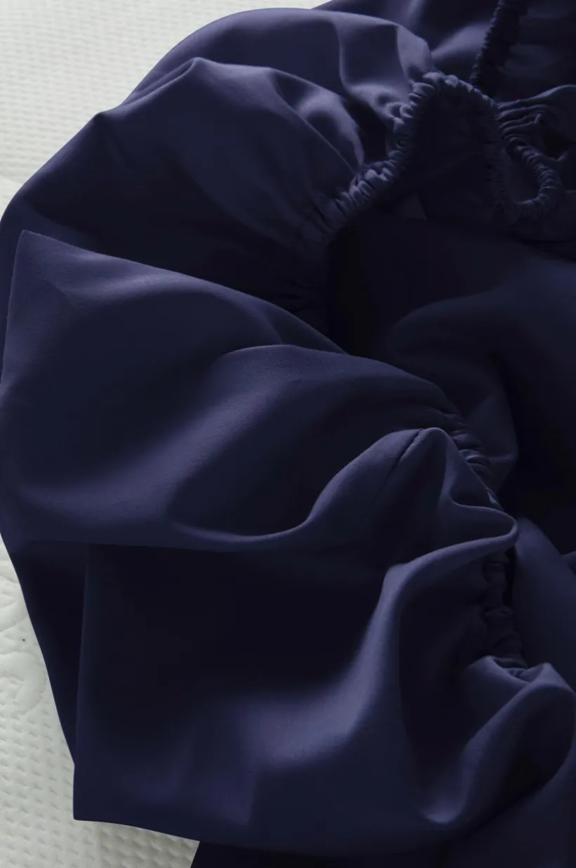Enfärgat dra-på-lakan i exklusiv satin av ekologisk bomull med resår i hörnen. Satin är en vävteknik som ger ett underbart slätt, mjukt och lent tyg. Bomull som vävs med denna teknik ger ett tyg med fin lyster och lyxig känsla. Den elastiska kanten gör att lakanet sitter bra på madrassen. Trådtäthet på 300 tc. (Trådtätheten talar om antalet trådar, thread counts, per kvadrattum i ett tyg. Ju högre trådtäthet desto högre kvalité.)