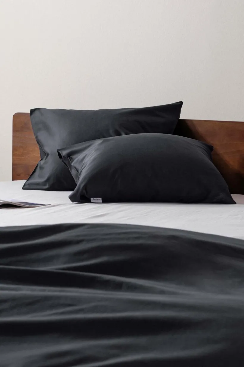 2-pack enfärgade örngott i exklusiv satin av ekologisk bomull. Satin är en vävteknik som ger ett underbart slätt, mjukt och lent tyg. Bomull som vävs med denna teknik ger ett tyg med fin lyster och lyxig känsla. Trådtäthet på 300 tc. (Trådtätheten talar om antalet trådar, thread counts, per kvadrattum i ett tyg. Ju högre trådtäthet desto högre kvalité.)