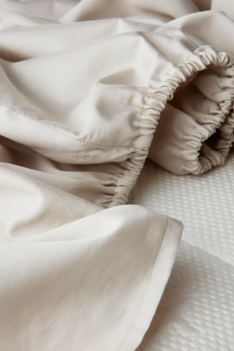 Enfärgat påslakanset i två delar, ett påslakan och ett örngott i exklusiv satin av ekologisk bomull. Satin är en vävteknik som ger ett underbart slätt, mjukt och lent tyg. Bomull som vävs med denna teknik ger ett tyg med fin lyster och lyxig känsla. Öppning i övre hörnen på påslakanet, som underlättar att trä påslakanet över täcket. Trådtäthet på 300 tc. (Trådtätheten talar om antalet trådar, thread counts, per kvadrattum i ett tyg. Ju högre trådtäthet desto högre kvalité.)