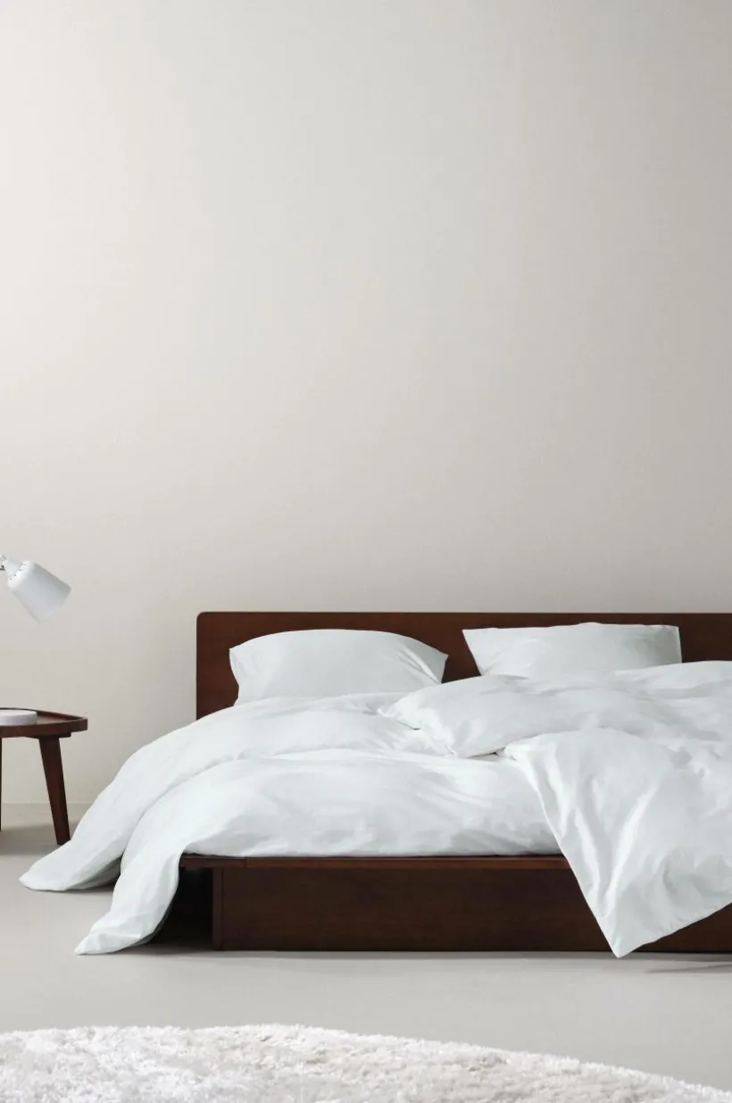 Enfärgat påslakanset i två delar, ett påslakan och ett örngott i exklusiv satin av ekologisk bomull. Satin är en vävteknik som ger ett underbart slätt, mjukt och lent tyg. Bomull som vävs med denna teknik ger ett tyg med fin lyster och lyxig känsla. Öppning i övre hörnen på påslakanet, som underlättar att trä påslakanet över täcket. Trådtäthet på 300 tc. (Trådtätheten talar om antalet trådar, thread counts, per kvadrattum i ett tyg. Ju högre trådtäthet desto högre kvalité.)