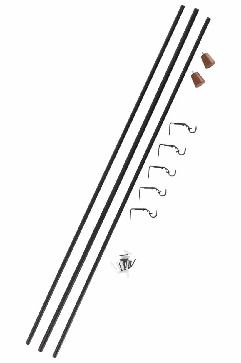 Storlek: Reglerbar 276-385 cm. 3 st 138 cm stänger, ø 1,6/1,9 cm. Ändknopp längd 4,5 cm, ø 4 cm. Väggavstånd justerbart 9-11 cm.